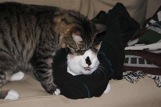 My kitten sitting on my husband's back http://imgur.com/3vbOL9H